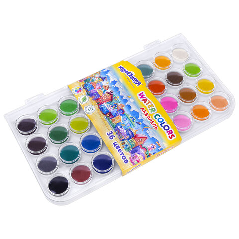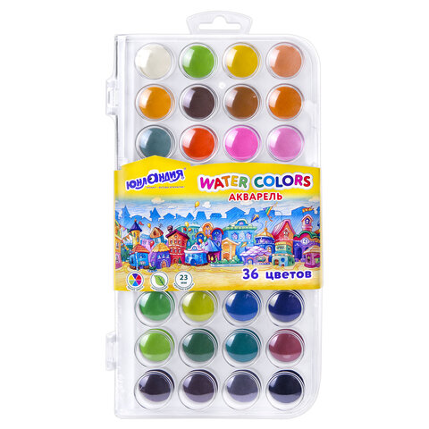 Купить Краски акварельные ЮНЛАНДИЯ "ДОМИКИ", 36 цветов, круглые кюветы 23 мм, пенал, 192633 вы можете в компании Канцтовары Карандашов, оформив заказ в интернет магазине, или
