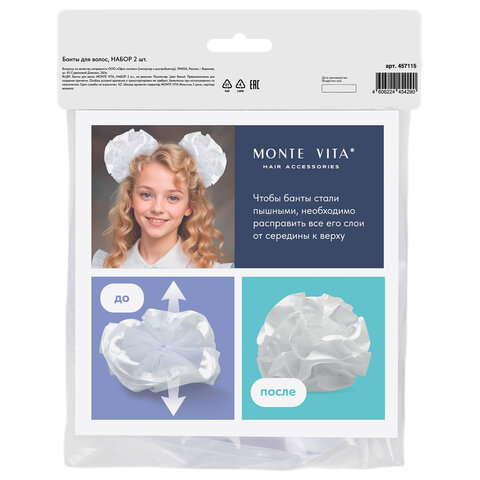 Банты для волос MONTE VITA подходит для создания красивых причесок. Идеальный аксессуар как для повседневной жизни, так и для торжественной линейки в школе, детском саду.