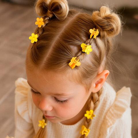 10 крабов в виде цветков с мягким покрытием – взрыв красок для детских причесок или летних укладок. Яркие оттенки (оранжевый, желтый) поднимают настроение, а безопасные закругленные края защищают нежные волосы.