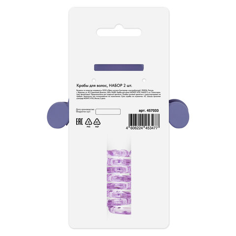 Купить Крабы для волос НАБОР 2 шт., 7 см / 10 см, глянцевый, soft-touch, фиолетовый, MONTE VITA (МОНТЕ ВИТА), 457033 вы можете в компании Канцтовары Карандашов, оформив заказ в интернет магазине, или