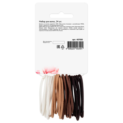 Купить Набор для волос 24 шт.: 2 заколки 5 см, 2 краба 2,5 см, 20 резинок, MONTE VITA (МОНТЕ ВИТА), 457035 вы можете в компании Канцтовары Карандашов, оформив заказ в интернет магазине, или