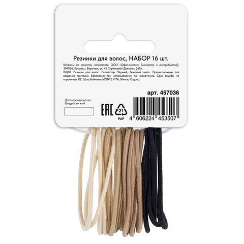 Купить Резинка для волос НАБОР 16 шт., 0,15х14 см, чёрный, коричневый, бежевый, MONTE VITA (МОНТЕ ВИТА), 457036 вы можете в компании Канцтовары Карандашов, оформив заказ в интернет магазине, или