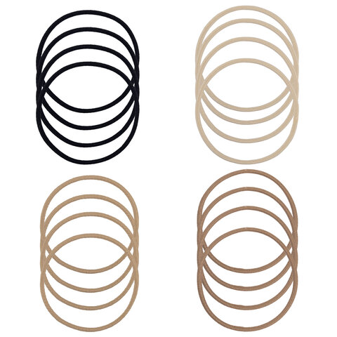 Резинки для волос НАБОР 12 шт., 0,45х14 см, чёрный, коричневый, бежевый, MONTE VITA (МОНТЕ ВИТА), 457038