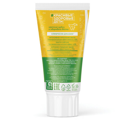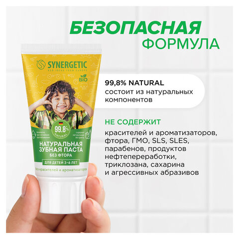 Зубная паста детская 50 г, SYNERGETIC, липа и ромашка, от 0 до 3 лет, натуральная, 201008