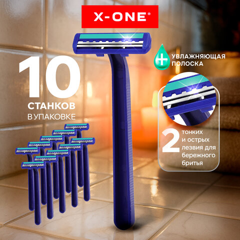 Бритвенные станки одноразовые, 2 лезвия, увлажняющая полоска, фиксированная головка, 10 шт., синий, X-ONE (ИКС-УАН), 700029
