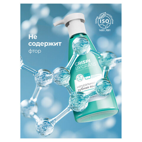 Зубная паста 250 мл, CRISPI by GRASS "Отбеливающая", без фтора, дозатор, 125724