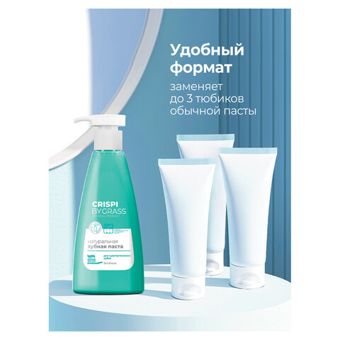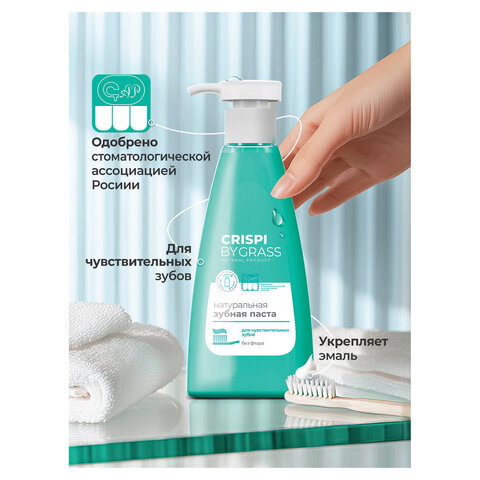 Зубная паста 250 мл, CRISPI by GRASS, "Для чувствительных зубов", без фтора, дозатор, 125723