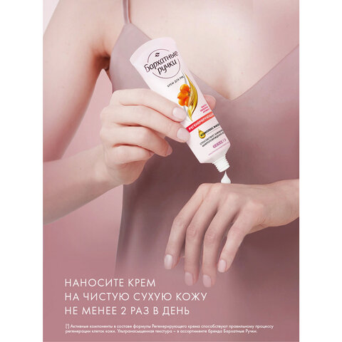 Доверьте заботу о руках бренду БАРХАТНЫЕ РУЧКИ. Специально для интенсивного ухода эксперты бренда создали регенерирующий крем.