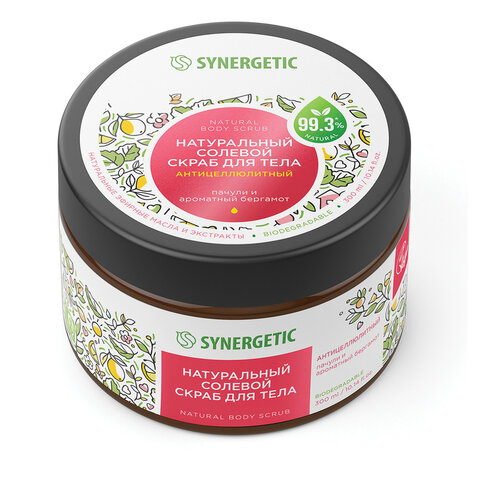 Купить Скраб для тела 300 мл, SYNERGETIC "Пачули и ароматный бергамот", антицеллюлитный, солевой, 800002 вы можете в компании Канцтовары Карандашов, оформив заказ в интернет магазине, или