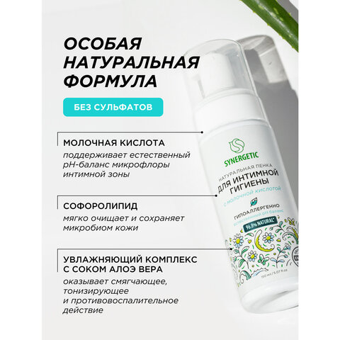 Пенка для интимной гигиены 150 мл, SYNERGETIC с молочной кислотой, натуральная, 701804