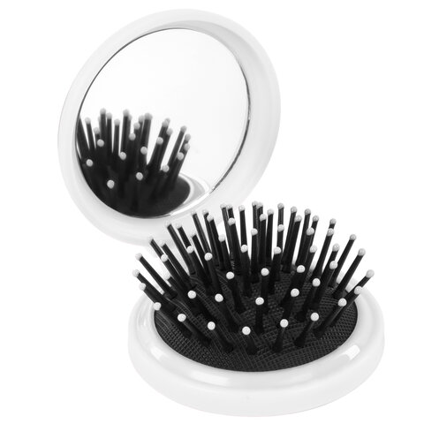 Практичная складная мини-расческа с зеркалом. Прочный корпус из ABS-пластика надежно защищает встроенное круглое зеркальце и нейлоновую расческу на гибкой TPEE-подушечке. Несмотря на компактные размеры, расческа обладает достаточной плотностью зубчиков для эффективного распутывания и укладки волос средней длины и густоты. Идеальный аксессуар для путешествий, офиса и быстрой коррекции прически в любых условиях.