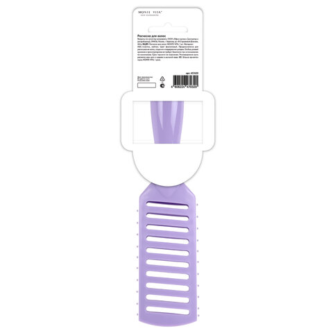 Расческа для волос скелетная, 22,5х4,5 см, продувная, фиолетовая/белая, MONTE VITA (МОНТЕ ВИТА), 457420
