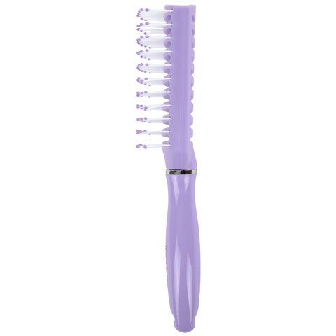 Яркая продувная скелетная расческа для безопасной укладки феном. Многочисленные вентиляционные отверстия оптимизируют поток горячего воздуха, ускоряя сушку и защищая волосы от перегрева. Нейлоновая щетина с массажными шариками на концах не только расчесывает, но и стимулирует кожу головы, улучшая приток кислорода и питательных веществ к фолликулам. Придает укладке гладкость и сияние, сохраняя здоровье волос.