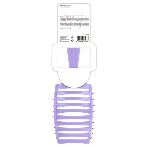 Расческа для волос скелетная, 22,5х4,5 см, продувная, фиолетовая/белая, MONTE VITA (МОНТЕ ВИТА), 457420