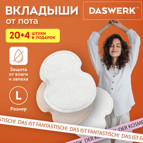 Вкладыши от пота, прокладки для подмышек, 24 шт., белый цвет, размер L, DASWERK (ДАСВЕРК), 609981