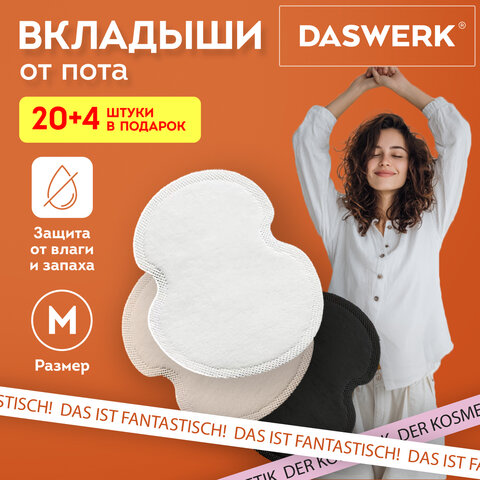 Купить Вкладыши от пота, прокладки для подмышек, 24 шт., 3 цвета: белый / бежевый / черный, размер М, DASWERK (ДАСВЕРК), 609986 вы можете в компании Канцтовары Карандашов, оформив заказ в интернет магазине, или