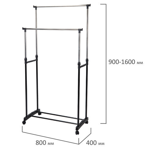 Вешалка для плечиков двухъярусная BOOMHOUSE (БУМХАУС) GR-003 (900-1600x800x400 мм), пластик/металл, черный/хром, 701438