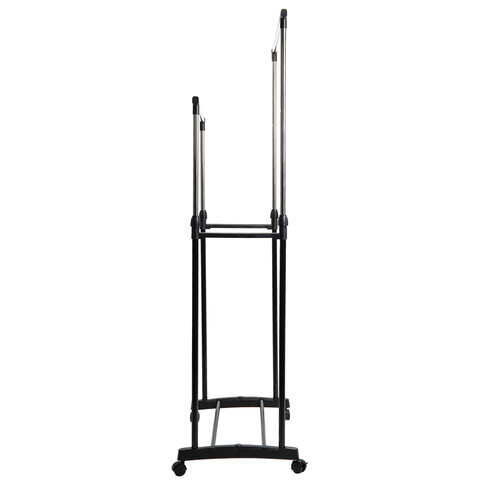 Купить Вешалка для плечиков двухъярусная BOOMHOUSE (БУМХАУС) GR-003 (900-1600x800x400 мм), пластик/металл, черный/хром, 701438 вы можете в компании Канцтовары Карандашов, оформив заказ в интернет магазине, или