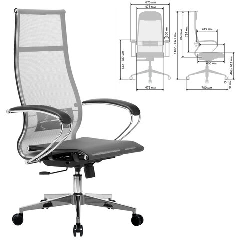 Кресло офисное МЕТТА "К-7" хром, прочная сетка, сиденье и спинка регулируемые, серое