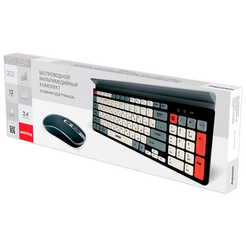 Набор беспроводной SMARTBUY 201359AG, клавиатура 79 клавиш, мышь 3 кнопки + 1 колесо, черный/серый/белый, SBC-201359AG-KW
