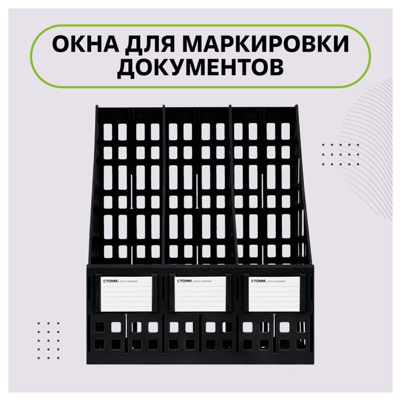 Купить Лоток для бумаг вертикальный Стамм, сборный, 3 отделения, черный вы можете в компании Канцтовары Карандашов, оформив заказ в интернет магазине, или