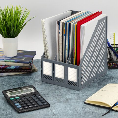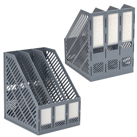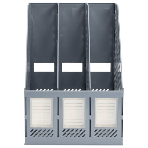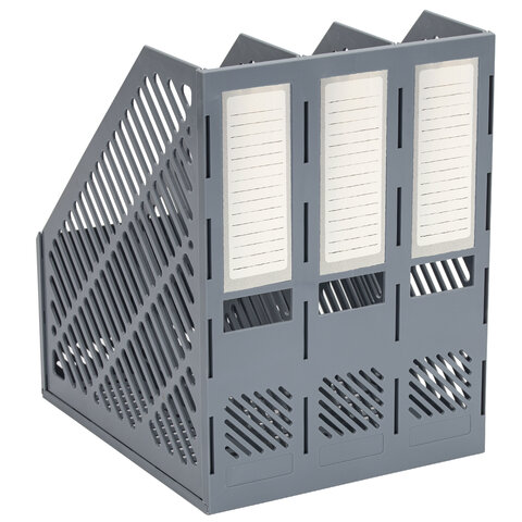 Лоток вертикальный для бумаг BRAUBERG "Office-Expert", 215 мм, 3 отделения, сборный, серый, 238018