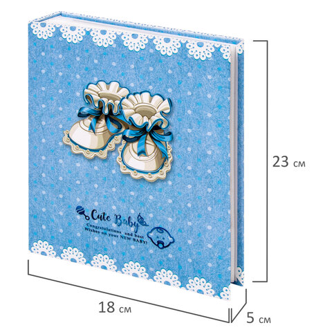 Фотоальбом BRAUBERG "Baby shoes" на 200 фото 10х15 см, твердая обложка, термосклейка, голубой, 39114, 391147