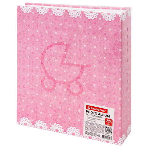 Фотоальбом BRAUBERG "Baby shoes" на 200 фото 10х15 см, твердая обложка, термосклейка, розовый,