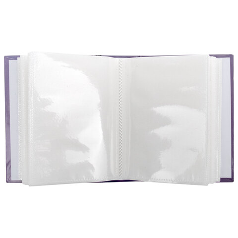 Состоит из 50 полипропиленовых листов размером 12х15,15 см с карманами и вмещает 100 фотографий размером 10х15 см по 2 штуки на странице.