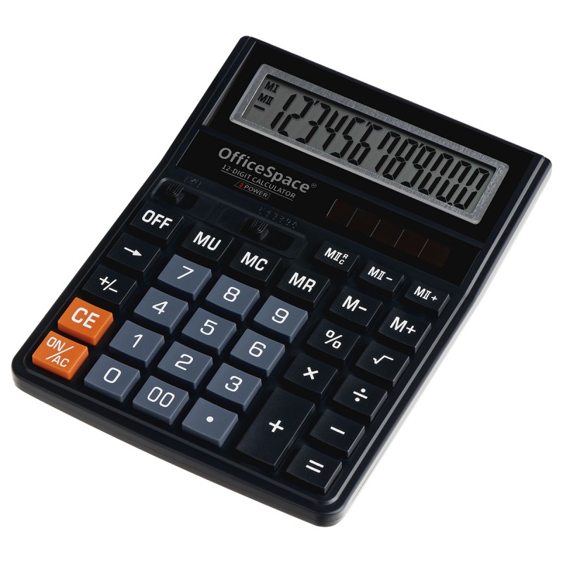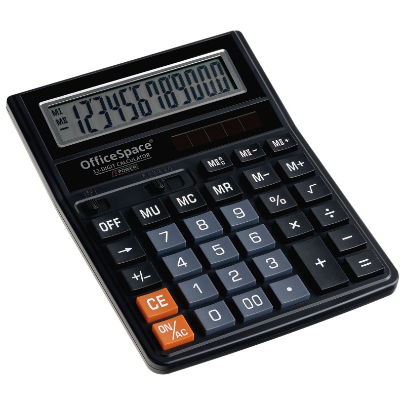 Купить Калькулятор настольный OfficeSpace, 12 разрядов, двойное питание, 143*190*29мм, черный вы можете в компании Канцтовары Карандашов, оформив заказ в интернет магазине, или