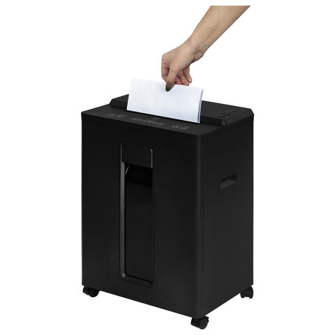 Рекомендуемое количество пользователей – от 4 до 6. За один раз уничтожает 15 листов формата А4 и 1 компакт-диск. Объем корзины составляет 22 л.