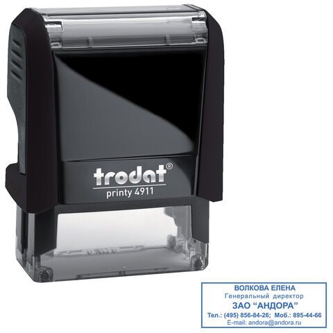 Купить Оснастка для штампа, оттиск 38х14 мм, синий, TRODAT 4911 P4, корпус черный, подушка, 52869 вы можете в компании Канцтовары Карандашов, оформив заказ в интернет магазине, или