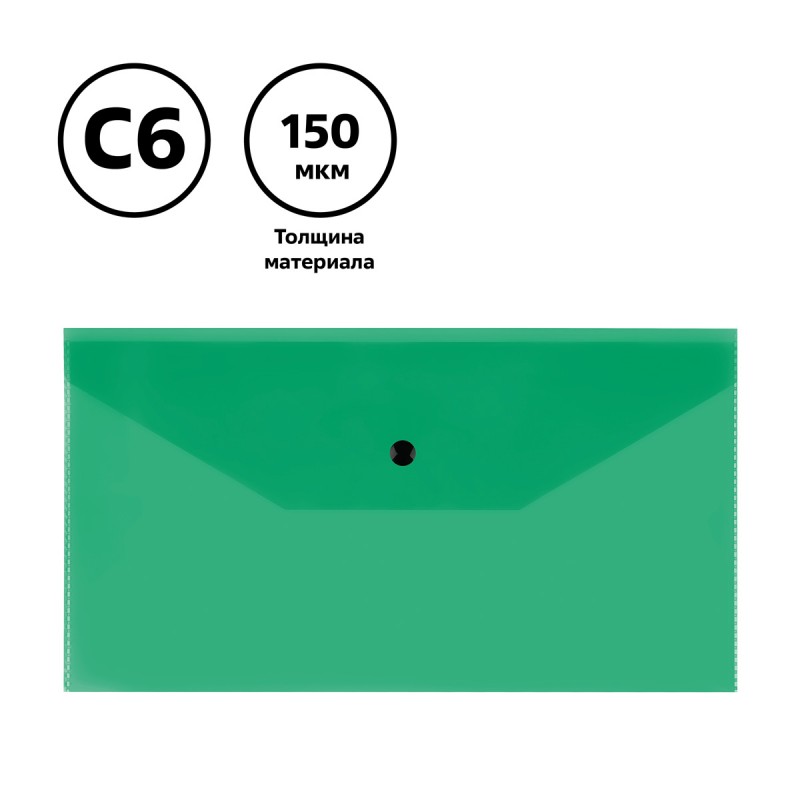 Купить Папка-конверт на кнопке СТАММ С6+, 150мкм, пластик, прозрачная, зеленая вы можете в компании Канцтовары Карандашов, оформив заказ в интернет магазине, или
