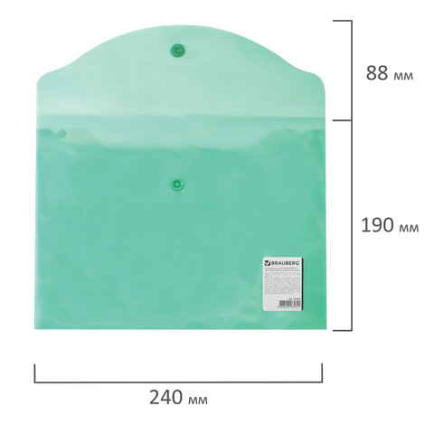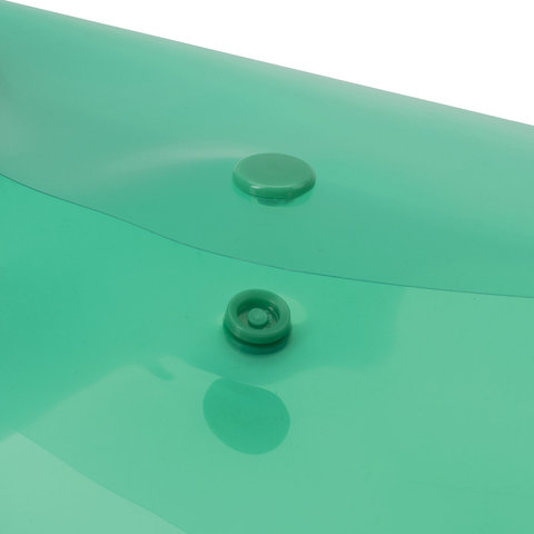 Папка-конверт с кнопкой МАЛОГО ФОРМАТА (240х190 мм), А5, прозрачная, зеленая, 0,18 мм, BRAUBERG