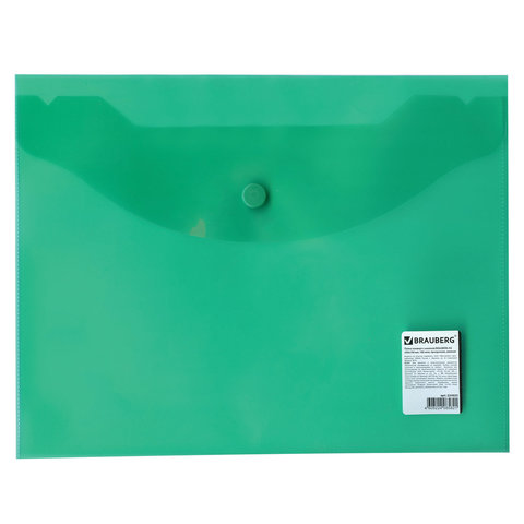 Купить Папка-конверт с кнопкой МАЛОГО ФОРМАТА (240х190 мм), А5, прозрачная, зеленая, 0,18 мм, BRAUBERG вы можете в компании Канцтовары Карандашов, оформив заказ в интернет магазине, или