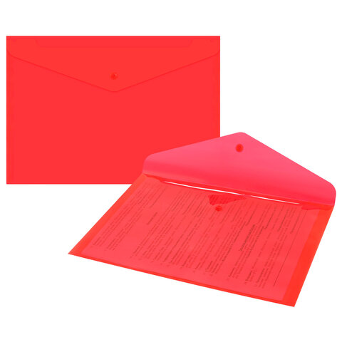 Купить Папка-конверт с кнопкой прозрачная А4, BRAUBERG "UNIVERSAL", до 100 листов, красная, 0,15 мм, вы можете в компании Канцтовары Карандашов, оформив заказ в интернет магазине, или