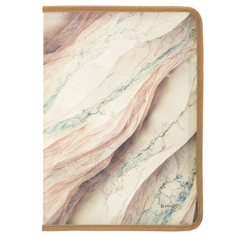 Папка на молнии для документов и тетрадей пластиковая BRAUBERG "Мрамор", А4, 330х230 мм, 0,5 мм, ассорти, 273932