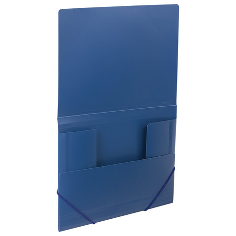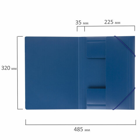Папка на резинках BRAUBERG, стандарт, синяя, до 300 листов, 0,5 мм