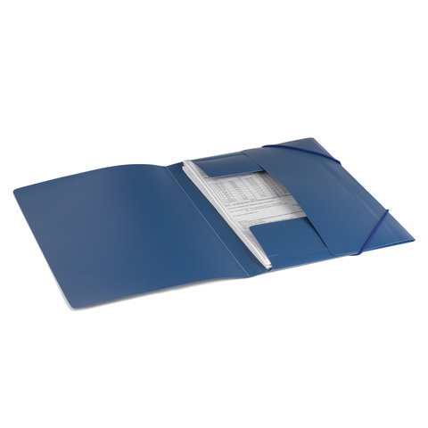 Предназначена для хранения документов. Клапаны папки надежно удерживают документы внутри. Резинки плотно закрывают папку. Изготовлена из плотного непрозрачного пластика.