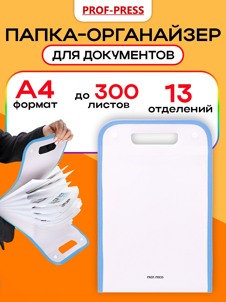 Купить Папка-органайзер для документов А4 на кнопках, 13 отделений, синяя, 24*37,8 см, ПО-0814 вы можете в компании Канцтовары Карандашов, оформив заказ в интернет магазине, или