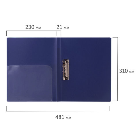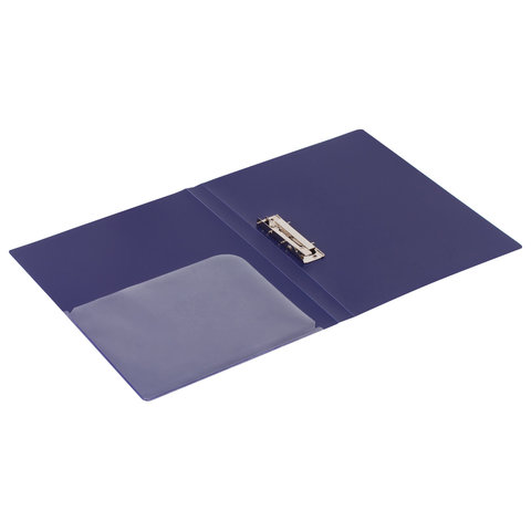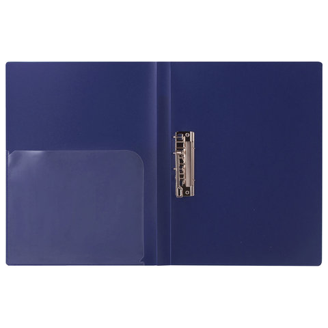Папка с 2-мя металлическими прижимами BRAUBERG стандарт, синяя, до 100 листов, 0,6 мм, 221625