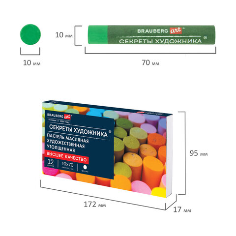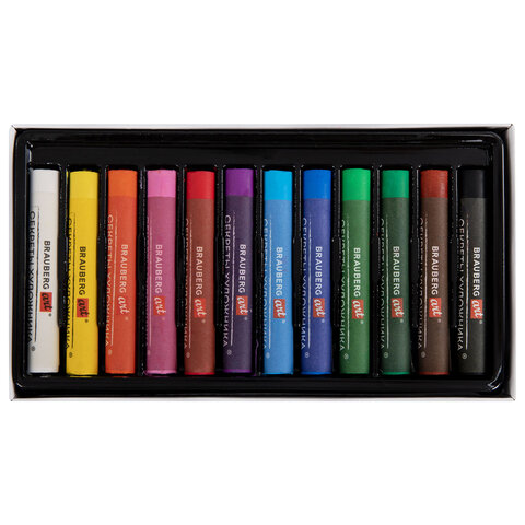 Пастель масляная BRAUBERG ART "Секреты художника", УТОЛЩЕННАЯ, 12 цветов, круглое сечение, 182099