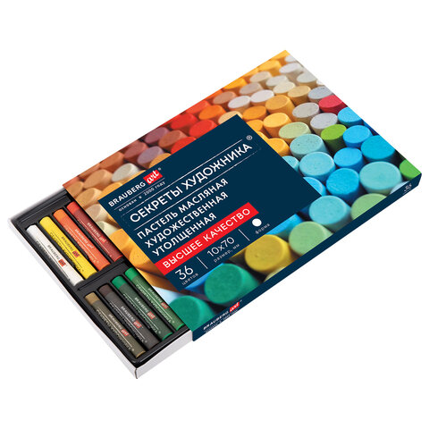 Пастель масляная BRAUBERG ART "Секреты художника", УТОЛЩЕННАЯ, 36 цветов, круглое сечение, 182001, 182101
