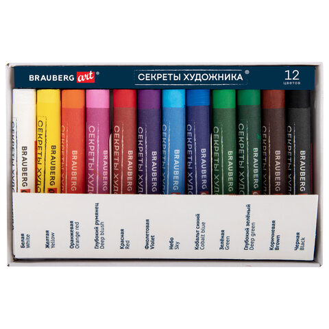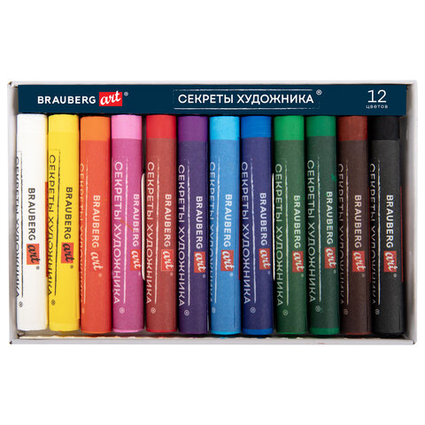 Пастель масляная художественная BRAUBERG ART "Секреты художника", 12 цветов, круглое сечение, 182095