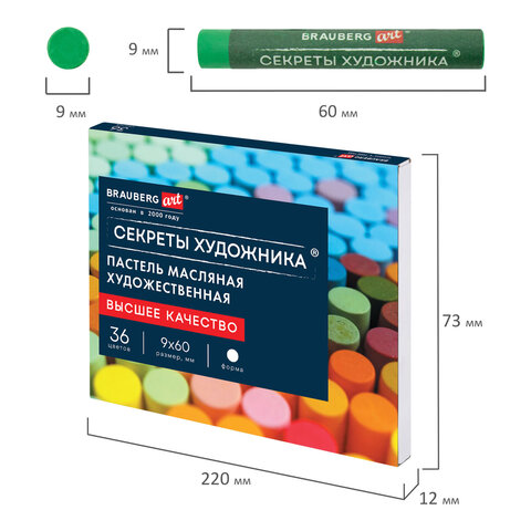 Пастель масляная художественная BRAUBERG ART "Секреты художника", 36 цветов, круглое сечение, 182097