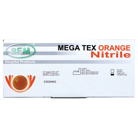 Купить Перчатки нитриловые сверхпрочные с текстурой SFM MEGA TEX ORANGE, Германия, 25 пар (50 штук), размер L (большой), 4036534914205 вы можете в компании Канцтовары Карандашов, оформив заказ в интернет магазине, или