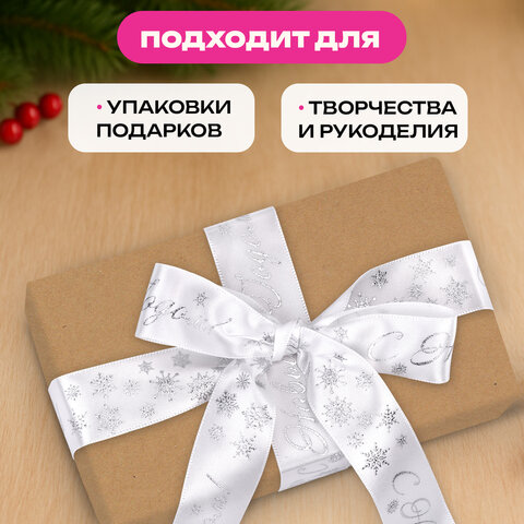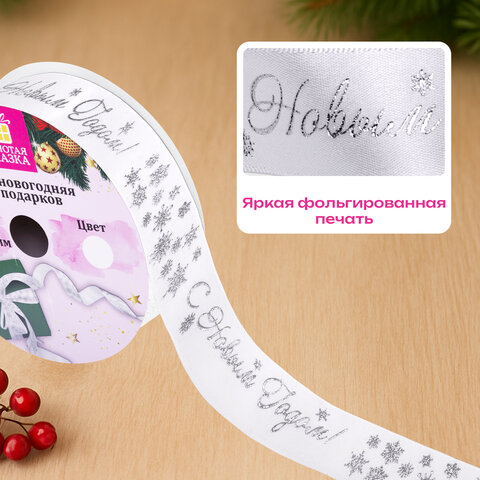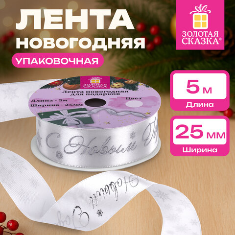 Купить Упаковочная лента новогодняя для декора и подарков, 25 мм х 5 м, БЕЛАЯ, с тиснением, ЗОЛОТАЯ СКАЗКА, 592413 вы можете в компании Канцтовары Карандашов, оформив заказ в интернет магазине, или
