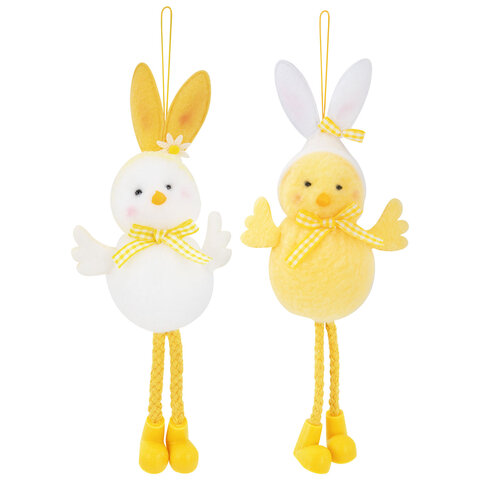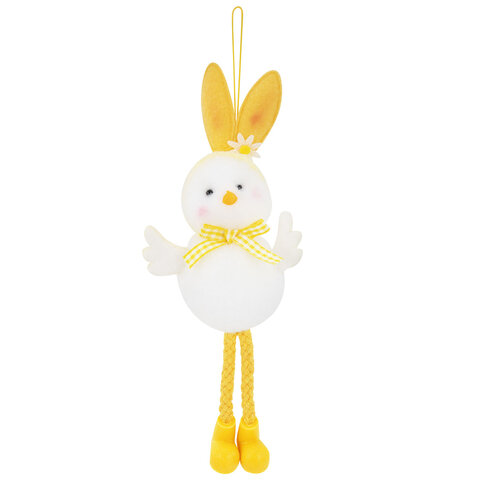 Необычный и невероятно милый пасхальный цыплёнок в забавной шапочке с кроличьими ушками. Декорация выполнена из полиэстера, украшена яркими деталями и представлена в двух дизайнах (без возможности выбора). Благодаря удобной верёвочке, декорацию легко подвесить для украшения интерьера.