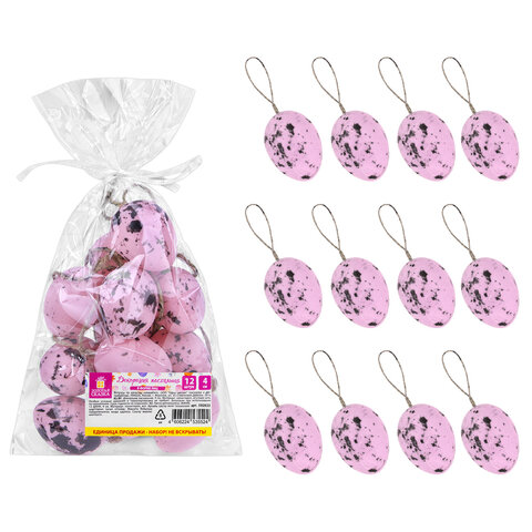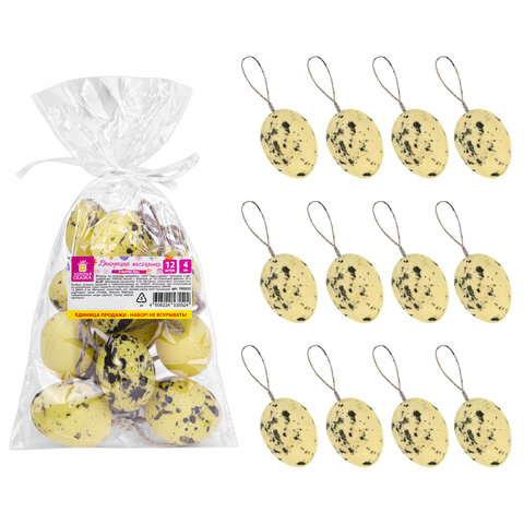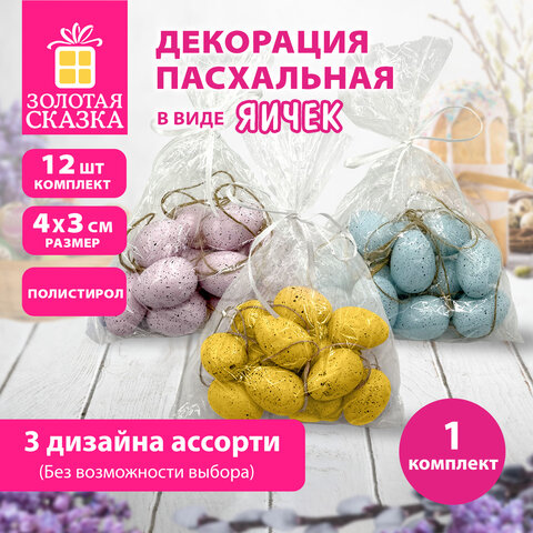 Купить Декорация пасхальная 4 см "Яйца" КОМПЛЕКТ 12 шт., пластик, 3 дизайна ассорти, ЗОЛОТАЯ СКАЗКА, 592633 вы можете в компании Канцтовары Карандашов, оформив заказ в интернет магазине, или