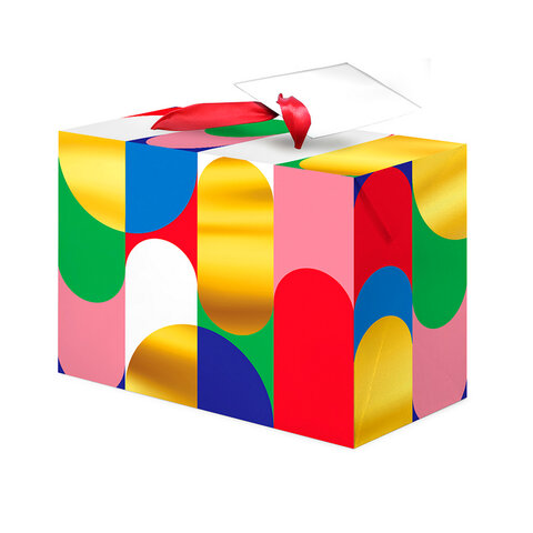 Пакет-коробка подарочный (1 штука) ассорти "Часы"/"Яркий", 22,5х13,5х20 см, тиснение фольгой, ламинация, 90080, 90079, 90080